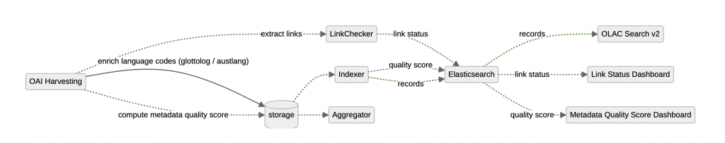 In 2025/2026 the DELAMAN OLAC subcommittee is working on redeveloping the Open Language Archives Community (OLAC) metadata harvester. The first part of this work has been to stabilise the existing systems and to work though them to ensure they use current security settings. The existing OAI-PMH feed from participating archives will continue to be accpeted, and we hope to include new features in future, including adding glottolog and Austlang codes.
